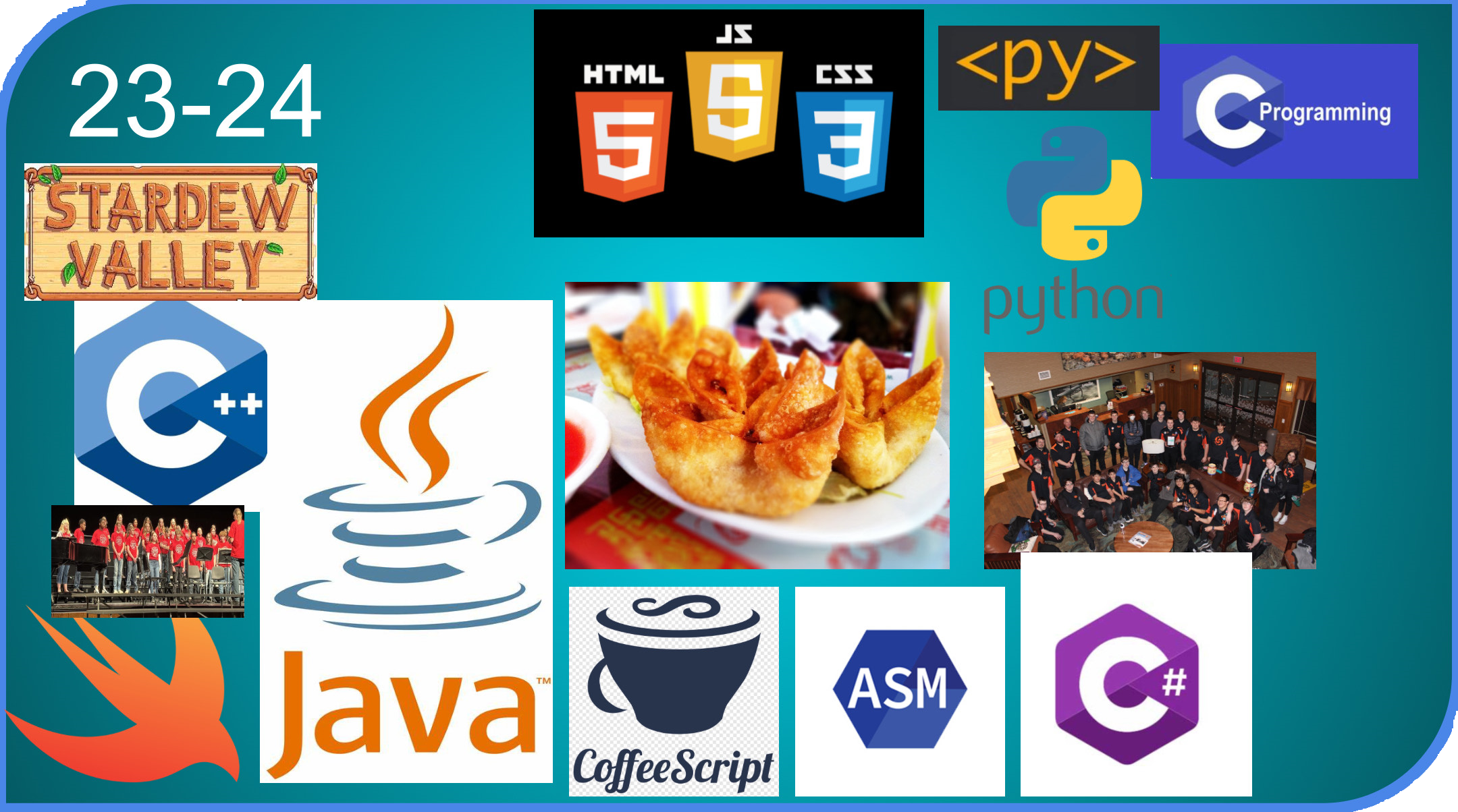 this came from the quote a jack of all traits is a master of none but sure beats a master of one. from a documentary I was watching about Dan Povenimire, but the quote didn't take full effect until a few months later when I had the epiphany during an electrical project of liked what I was doing but I don't think I would want to do this as a job, and decided to take my chance at programming in java in robotics. over that summer I learned Java and how to program a robot and enjoyed doing it. Because of that, I have taken up a leadership position for this and the rest of my high school career. because of that one skill I learned in Java; decided I wanted to go into software development. In the school years of 2023-2024, I learned: Swift, Java, C, C++, C#, CoffeeScript, PyScripts, EMCA script, Python, and Assembly. That is not all I began to take out personal hobbies that aren't computer science and coding related. like learning how to cook and make complex meals from scratch, gardening, Psychology, and Economic reliance on Game theory. that better shaped who I am as a person other than a person who stays inside all day a makes websites for fun; and that people who decide that just want to get better at one thing or stop when they get into a comfortable place end up slowing or stopping their growth as a person, and comparing who you want to be like and want you to think your like. for example, on the outside, I'm more introverted nerd stereotype who likes computer science, and one of my favorite games is Stardew Valley. but on the inside, I do not spend that much time playing video games but more offline the biggest example of I do not have any social media, and the ones I don't I don't use or post on them like your support to do. but I also work cooking my favorite dish to make is crab Rangoon even though I don't make it often, or gardening/general yard work. it builds an invisible personality that many people don't really see. and those skills invisible or not make believe that to make a fulfilling life is building up parts of your character than being stagnant and doing the bare minimum.